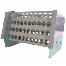 Микробиологический штатив позволяет размещать в нем пробирки под наклоном, создавая скошенную поверхность питательных сред и культур микроорганизмов. У штатива два варианта наклона — под углом 5 или 20 градусов. Вместимость составляет 40 пробирок диаметром до 18 мм.
